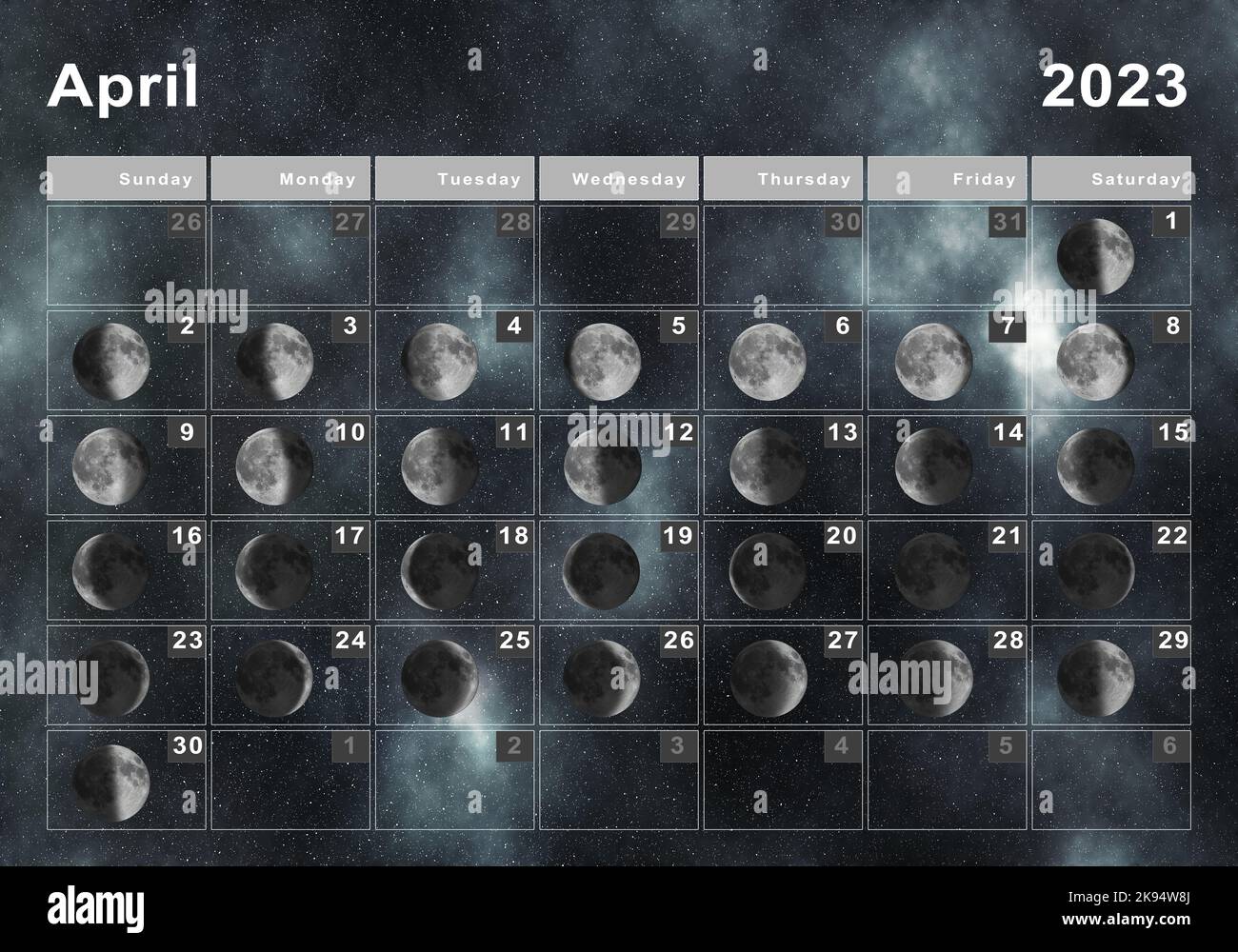 Abril 2023 Calendario lunar, Ciclos lunares, Fases lunares Fotografía , Con el reciente inicio del mes de abril se abre también una nueva fase en el desarrollo del calendario lunar en 2024, como parte de un calendario con el que se mide el tiempo y que es.